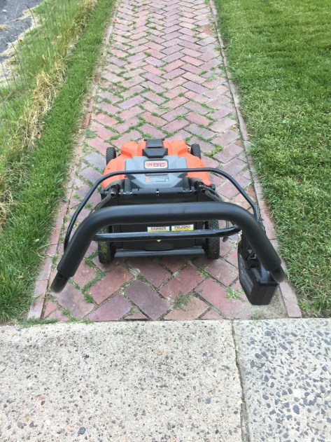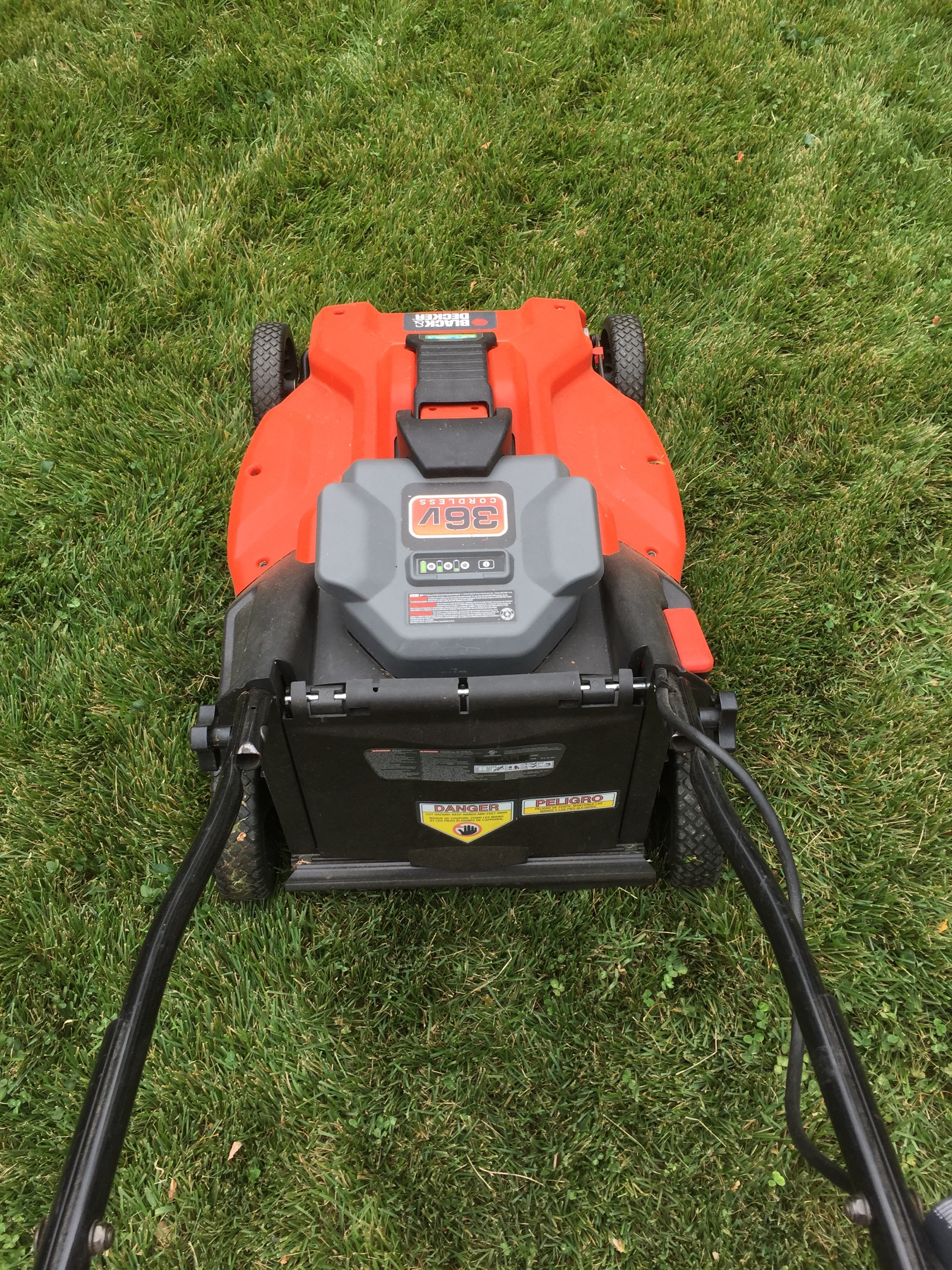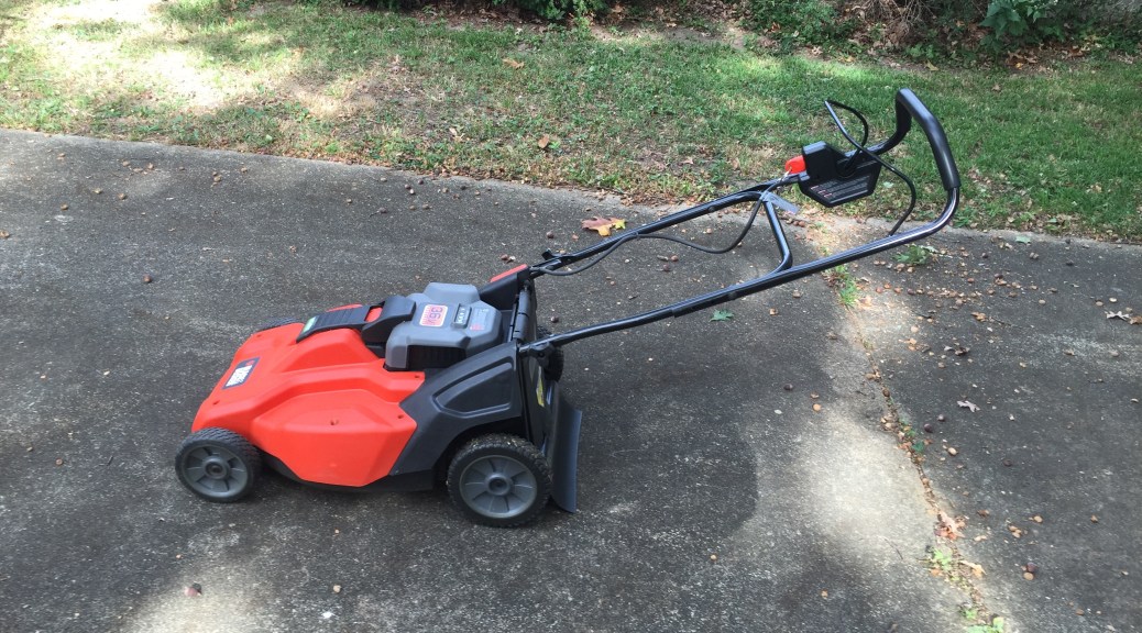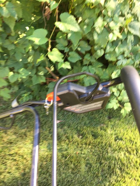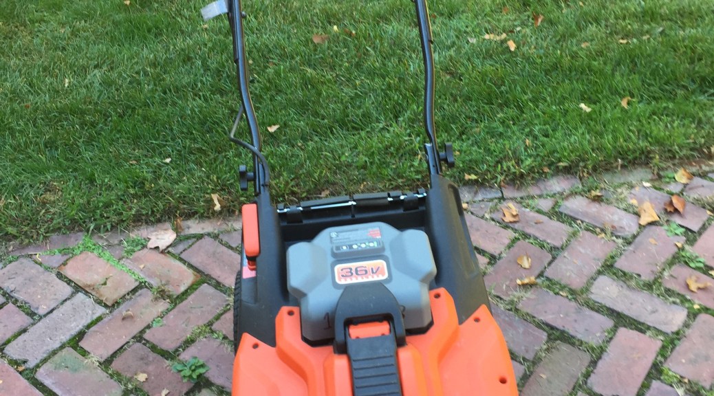 Leaves and acorns. The lawn grew a bit too. Mulching the leaves used more power. The battery was down to 1/4.