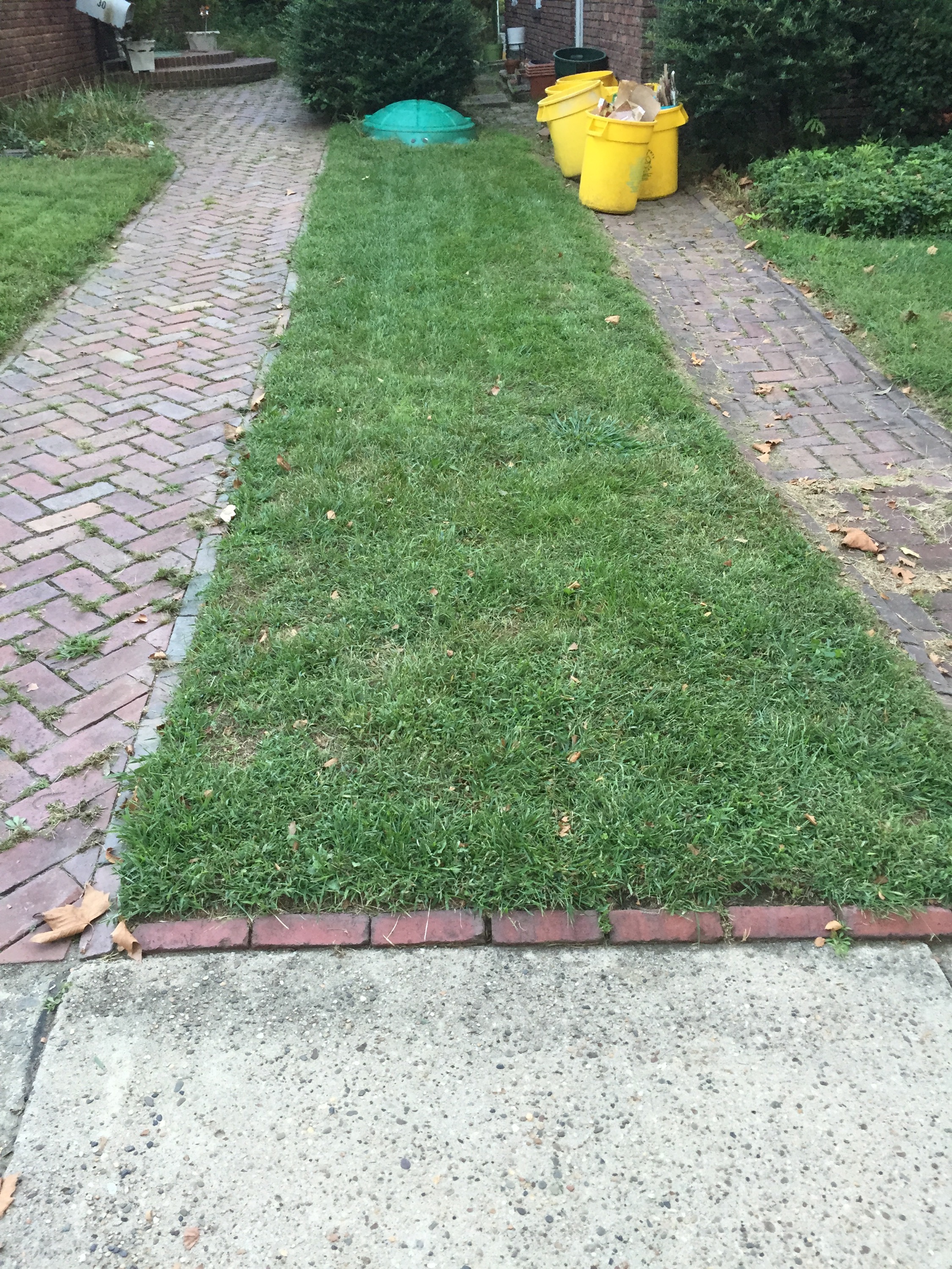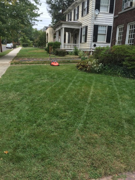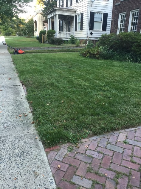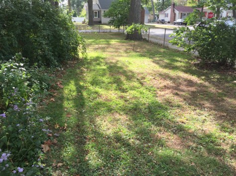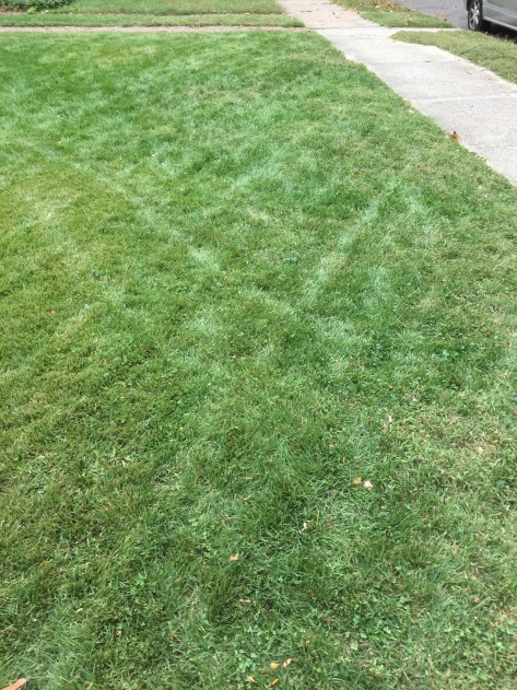I already put in the stakes to mark the walks in the snow. This was before the freeze, but later in the week we were in the 60s, so the grass continued to grow.