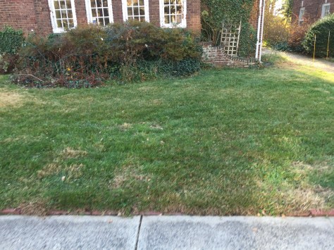 I already put in the stakes to mark the walks in the snow. This was before the freeze, but later in the week we were in the 60s, so the grass continued to grow.